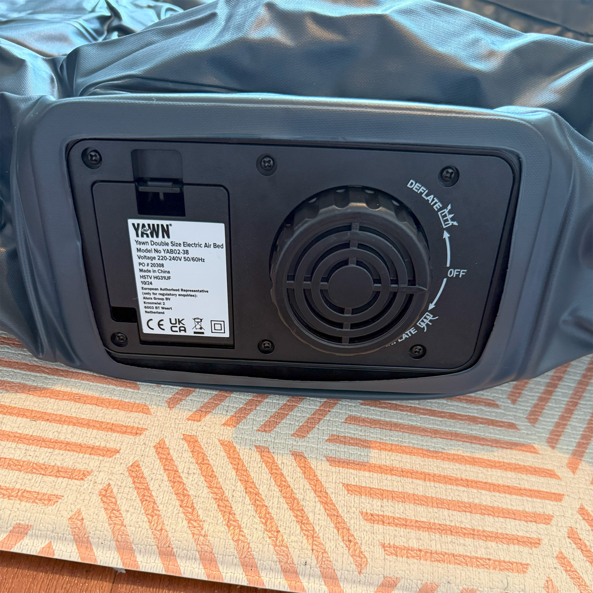I was so impressed with the Yawn air bed during testing. It’s easy to inflate; just unravel the power cable from the little box at the back, plug it into an electrical socket, and inflate. My double version took less than five minutes to fully inflate. You can then unplug it and put it anywhere you want. And it works in reverse too, deflating it in no time at all, so it’s quick to pack away and doesn’t require me to do a roly-poly over it to get the air out.
