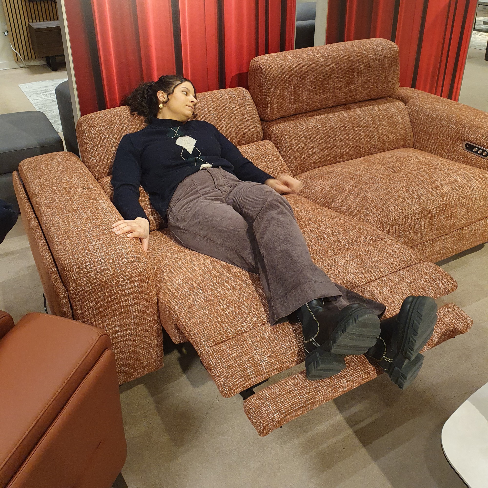 When testing this sofa style in the Sofology showroom, it was difficult for me to get up and leave – I just wanted to sit there and feel enveloped by this sizeable sofa design with fairly deep seats that allow for you to fold your legs on top and armrests reaching high, levelling with the backrest. So you can rest your head on the armrest even when sitting up.