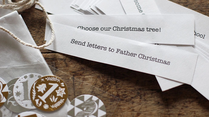 I use a spreadsheet to plan out the whole month's activities in advance. Then it's a case of creating the physical calendar to unveil on 1 December. Whether you want to go all-out crafting a masterpiece, or keep thing is simple is totally up to you. There are loads of creative ways to make your own (or you can buy kits or advent sets), but ultimately all you need is each activity written down to be opened on the relevant day.