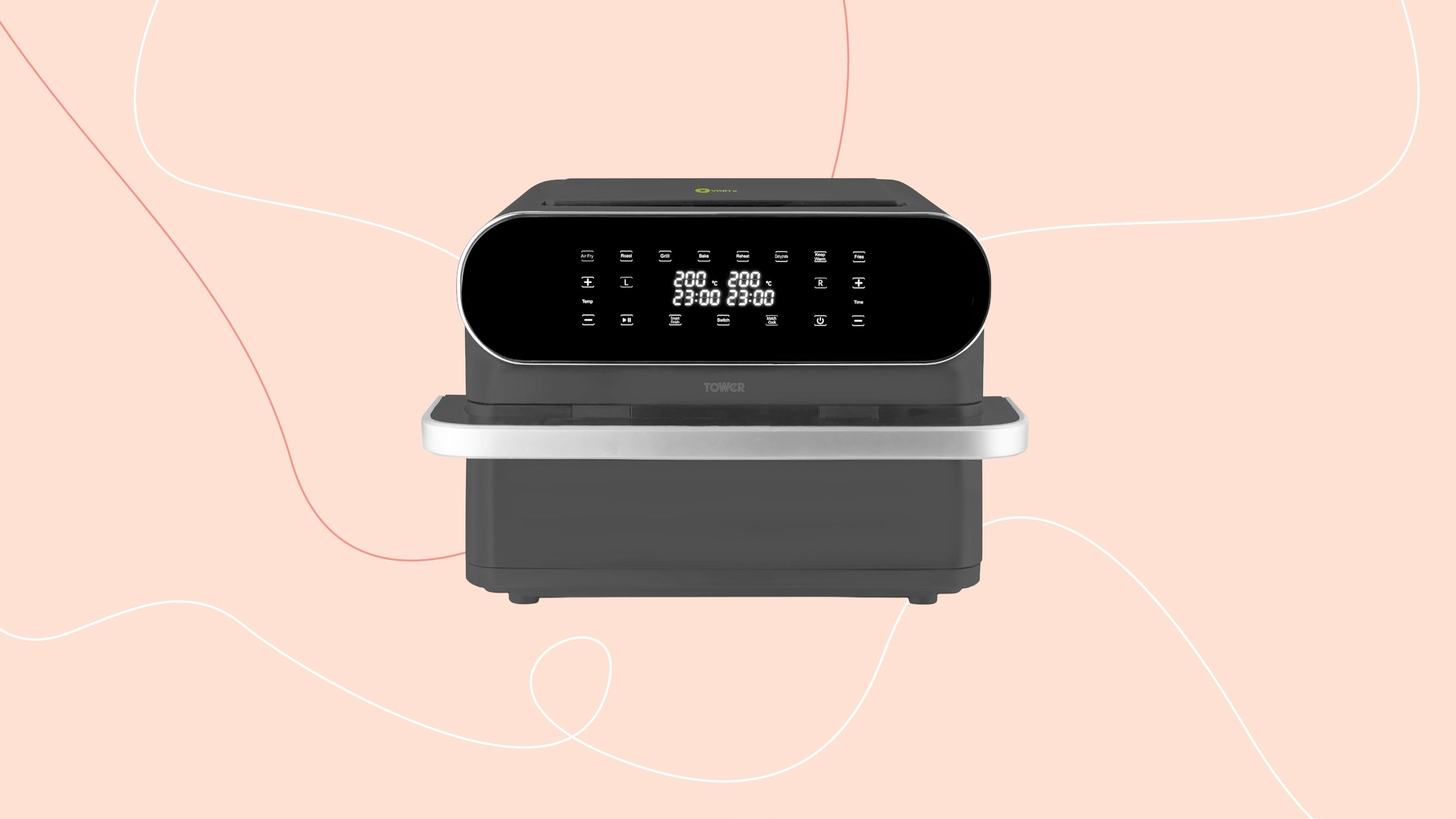 With this all-important divider, you can switch on the the Tower Elite air fryer from one megazone to two disparate ones easily. You can then program each side to a different temperature and to run for different times – an excellent weapon to have in your arsenal if you're cooking for fussy eaters.