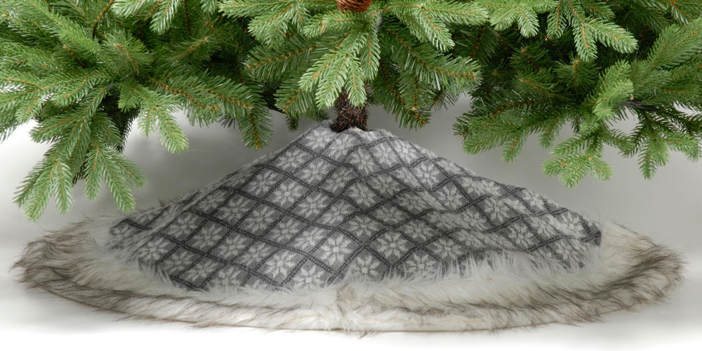 If you're looking to create an alpine lodge feel at home this year then this is the tree skirt for the job. The chalet-style skirt is edged with a luxurious faux fur ,material, while the main fabric is a classic grey scale of a fair Isle pattern.