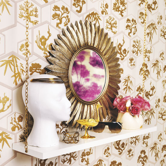 Luxe printed wallpaper and a small but beautiful edit of special objets will bring a sparkle to any area. Ideal for a welcome in the hallway, especially if there isn't room for a console, a bedroom, bathroom or even a kitchen corner.