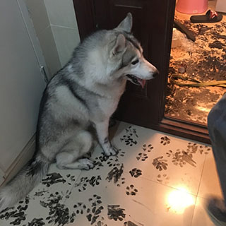 In the dog house! This husky found a bottle of ink, trod in it and caused complete carnage
