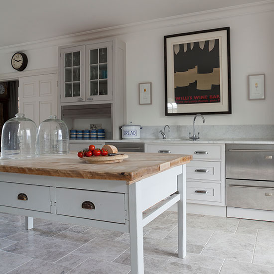 Dark and durable, slate floors are a practical choice for a country kitchen. Extra large tiles give this traditional choice a smart modern edge.
