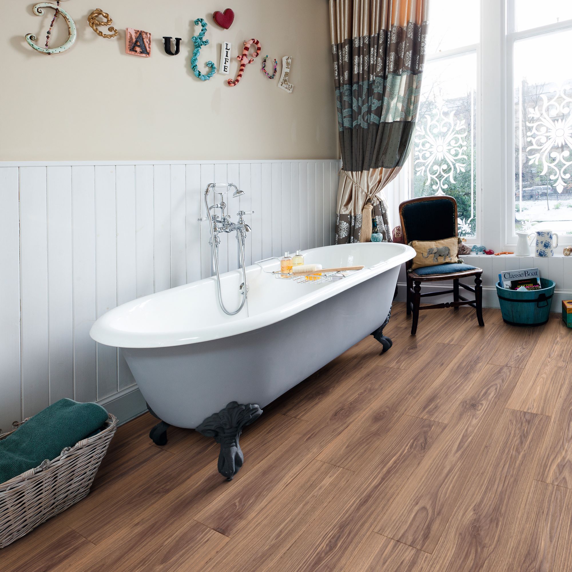 Quick-Step’s patented Uniclic Multifit system, available at B&Q couldn’t be easier to install. Using a special tongue-and-groove system, the vinyl planks are laid with a single ‘click,' with no need for adhesive.