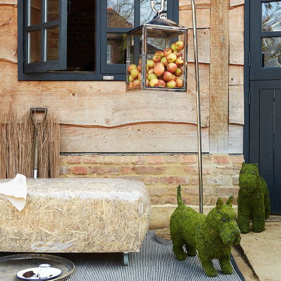 This ingenious straw bale seat sums up the modern country vibe perfectly.
