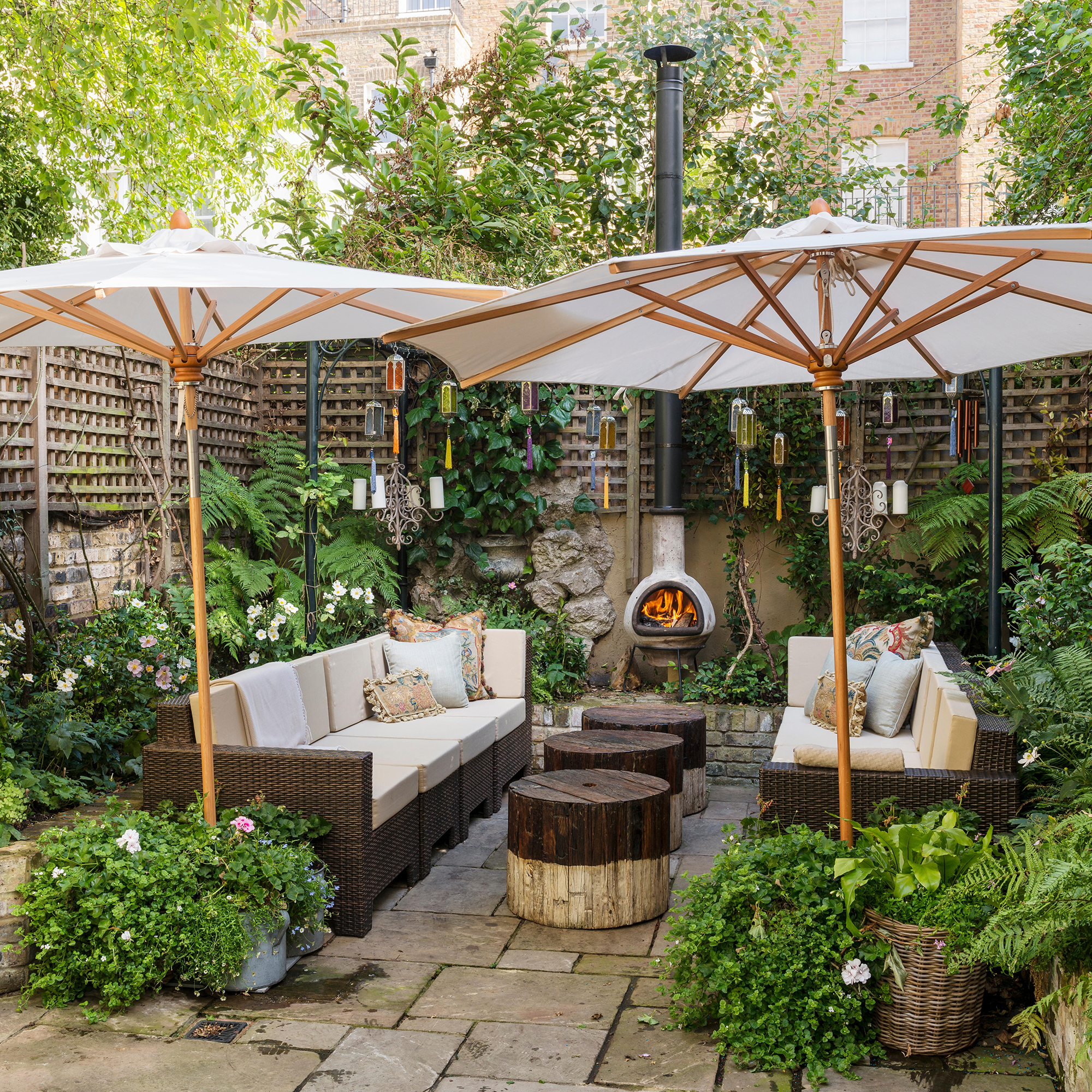 As the sun sets, light up a brazier or fire bucket – you could even have a few dotted around your garden, creating pockets of warm where guests can congregate. Choose a cut-out design like the Black metal firepit bucket, £34.99, Lights4Fun and you’ll get some interesting shadows cast onto your patio ideas, too.