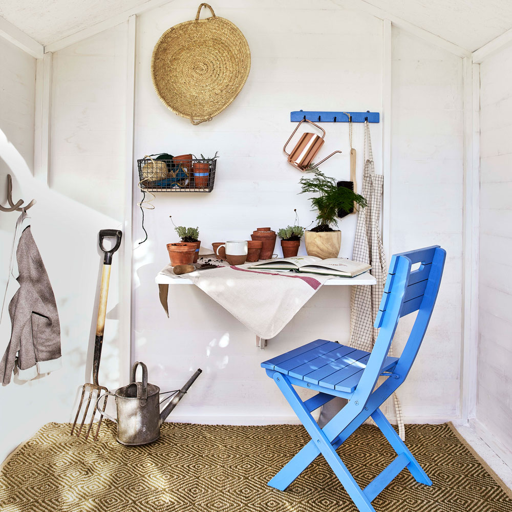 For purists, a shed is nothing more than a place to store tools and pot plants out of the rain. But that doesn't mean it can't be pretty! Peg up pictures of your favourite blooms to inspire you, add a chair with cushions so you can take a break, and opt for a concrete or tiled floor that's easier to sweep clear of compost.