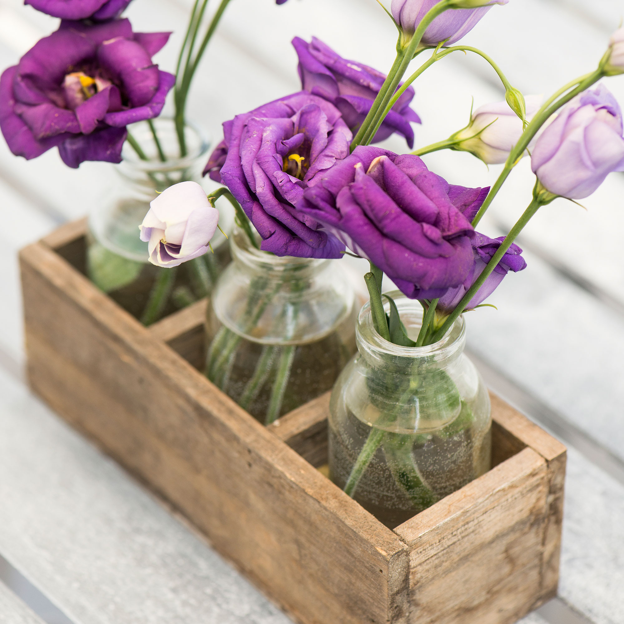 A small box can be easily knocked up with a hammer and a few nails and used to display pretty posies in vases.
