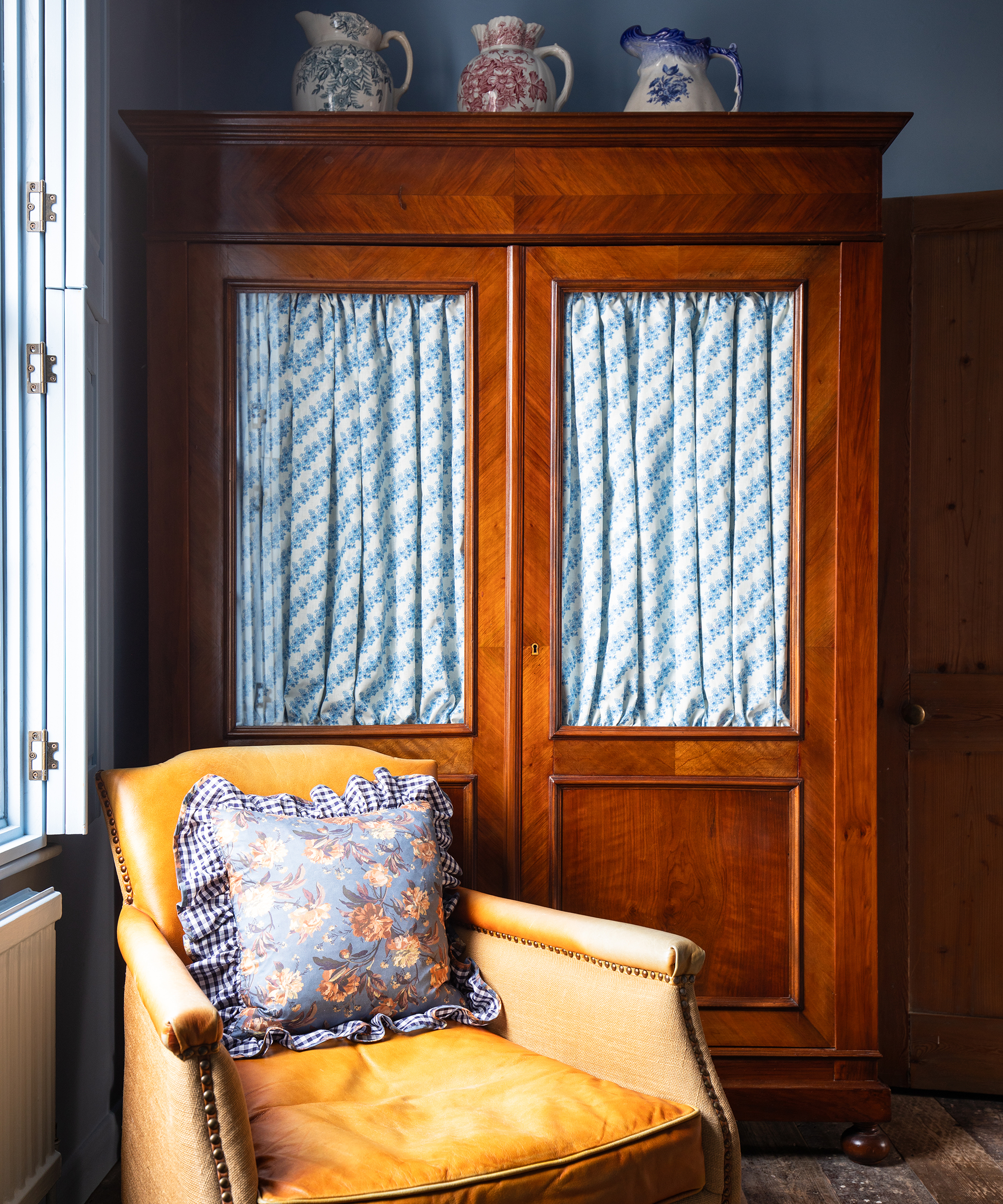 Bidding at auction and visiting antiques shops have become favourite pastimes for the owners. ‘I love the story behind older pieces, and that they were used and loved by people before me. I find it romantic and intriguing.' This linen press was found at auction.