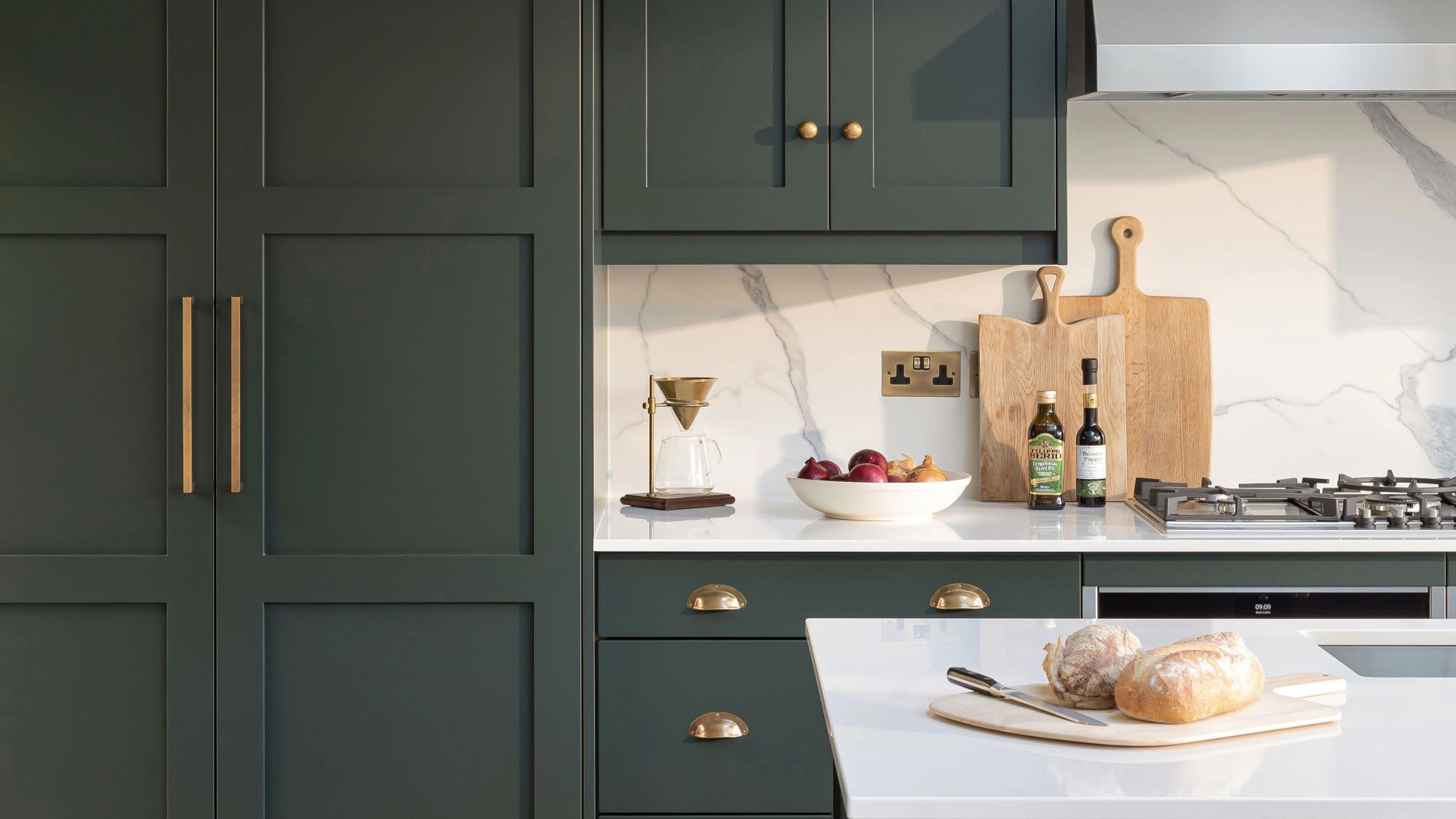 A light-starved space has been swapped for a daring green kitchen extension that oozes sophistication