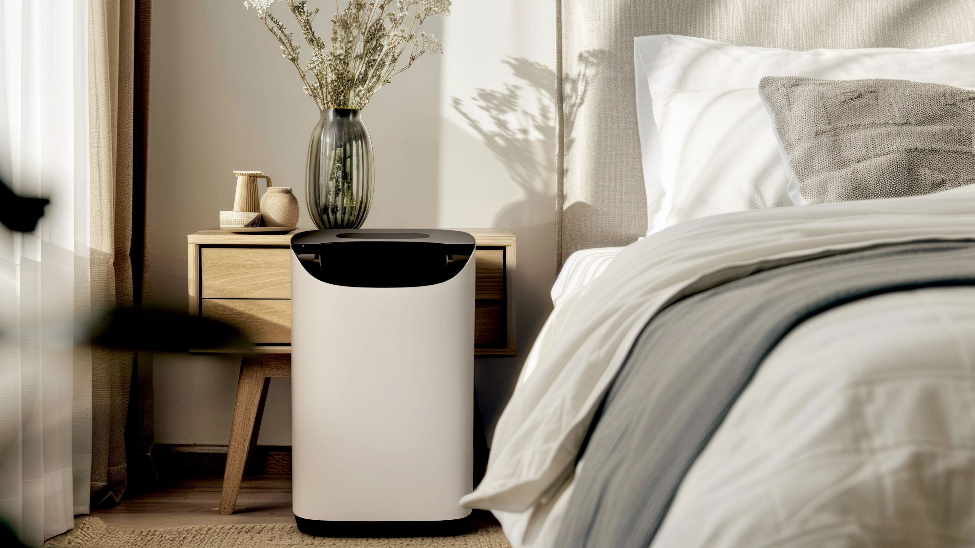 I've been testing the MeacoDry DD8L Pro Desiccant Dehumidifier, RRP £259.99, Meaco, in my home for a few weeks. I used it in my kitchen to help speed up the drying process of my laundry. I moved it to my living room, to see how it tackles the levels in this space while it's being used by my toddler and me, and then to my bedroom — to test its night mode and if it's actually possible to sleep with it switched on.