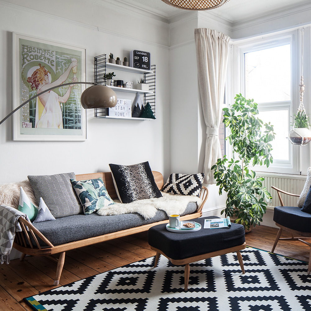 The pair updated the kitchen and bathroom, and painted every room in white, creating a perfect backdrop for their Scandi-inspired furniture and monochrome accessories. 'Our style is an eclectic mix of Scandi, Mid-Century and bohemian, and always to the max,' they say. 'We can't do minimal - when we see a free space, we always start to wonder what we can put there!'