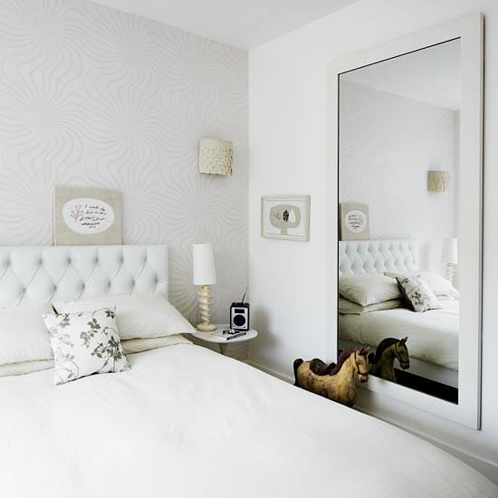 The mirror is from John Jones. The table is from B&B Italia and the bed and chair are from SCP.