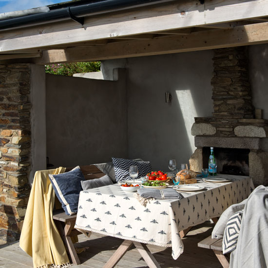 This outdoor dining space is rustic, informal and stylish. Soften a
