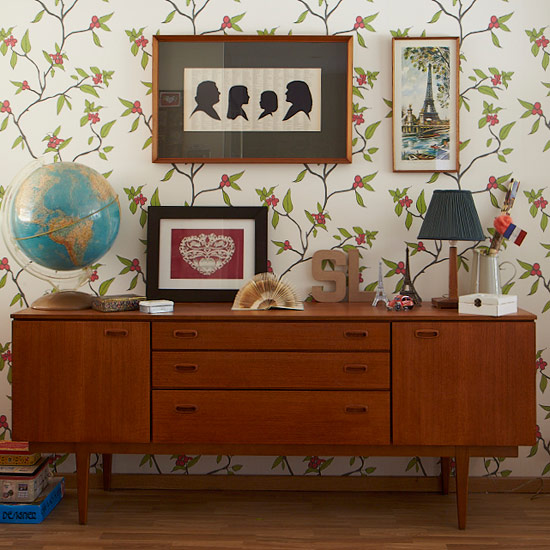 A 1970s sideboard takes pride of place in the dining area and is the perfect spot for displaying various artworks and knick-knacks.