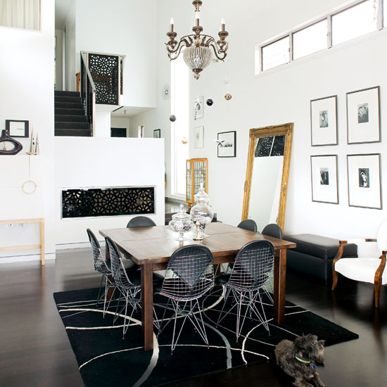 In the dining room the striking mixture of styles and eras, linked by the classic monochrome colour palette, is bold and theatrical.