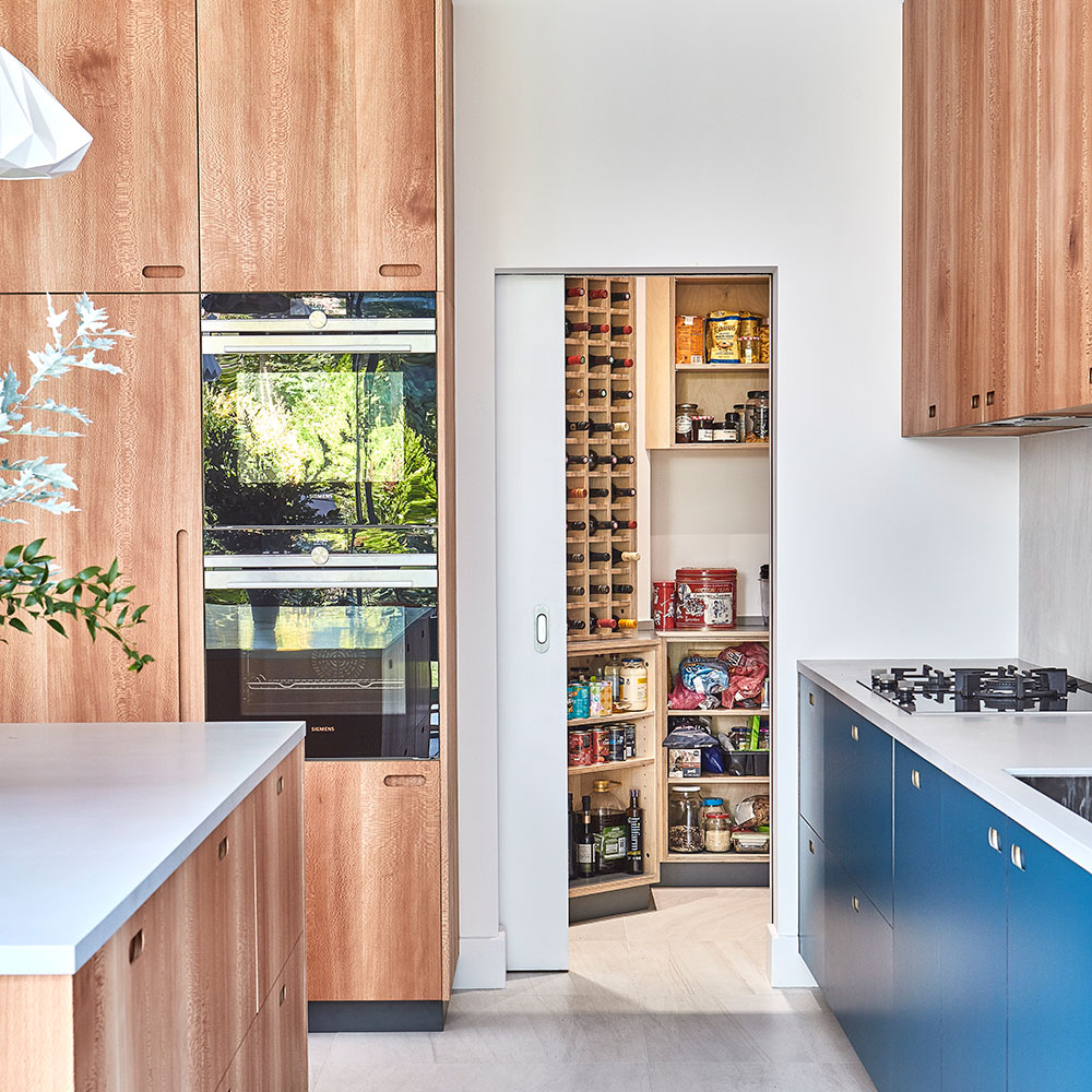 ‘I’m so pleased we made space for a separate larder. All our food and supplies go in here and it’s arranged so we can see everything at a glance. I love cooking and the larder is like a filing unit for me. My friends are so jealous.’