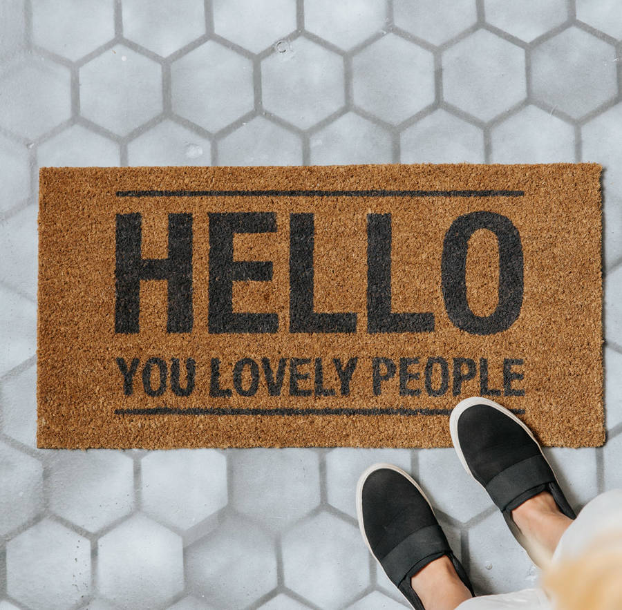 Hello You Doormat, £32, Rose & Grey at Not on the High Street