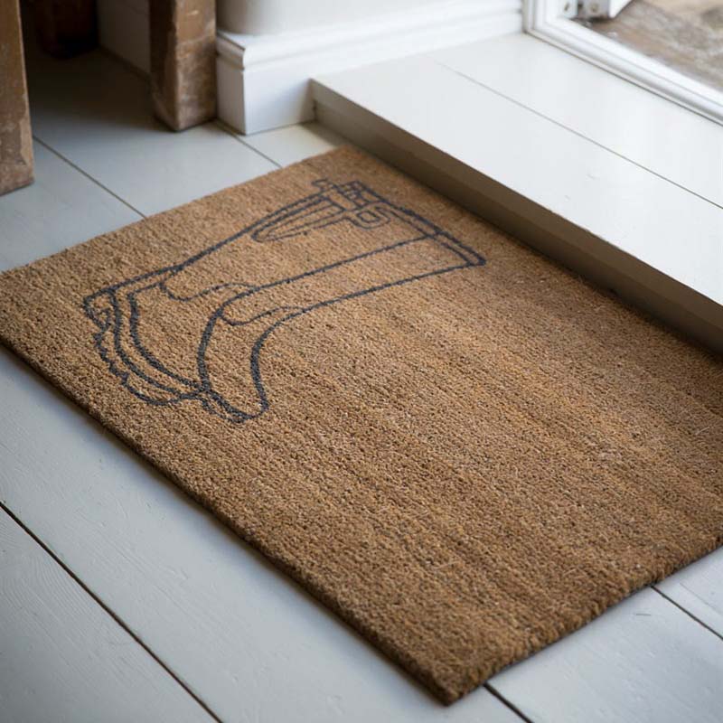 Small, durable doormat with a quirky Wellington boot design - perfect for reminding visitors outside the back door, boot or utility room to clean those muddy shoes before entering the house!