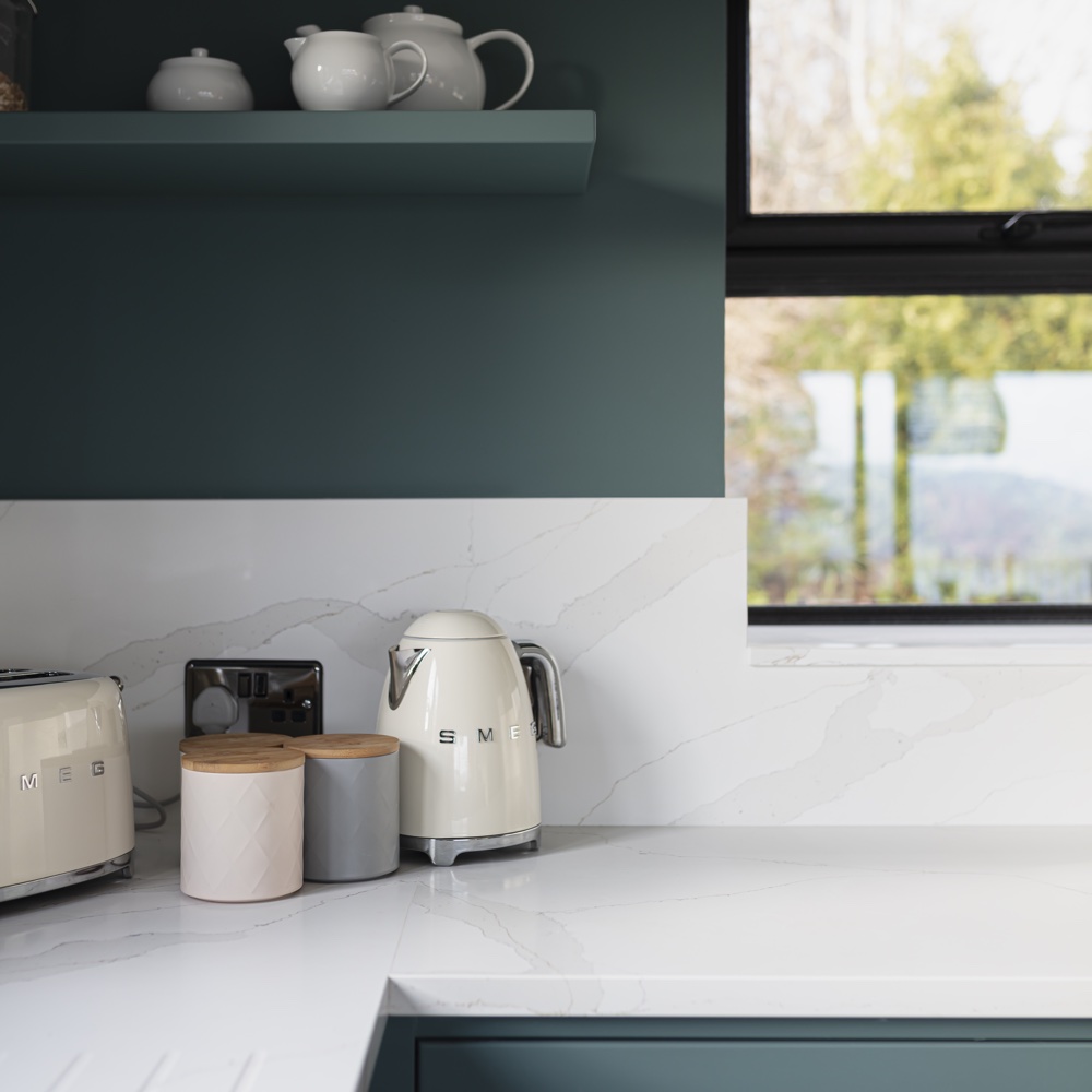 A beautiful rich blue hue echoing the ocean has been used throughout, with luxury Smeg appliances adding a upscale finish.