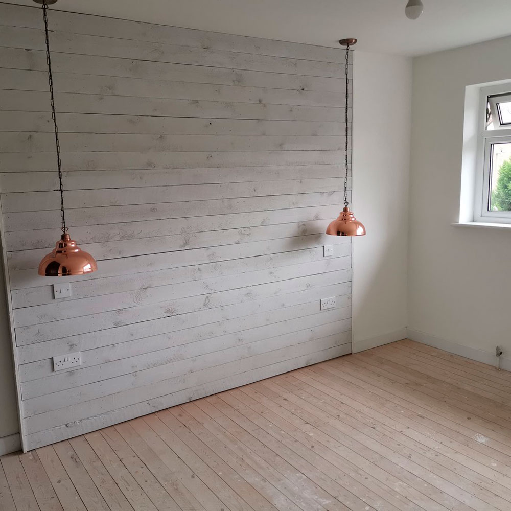 'The pallet wall cost nothing as the pallets were given to me from a building site. I painted them using Dulux polished pebble,' Gemma adds. 'White paint was used for the rest of the room. The pendant lights were from Next and the idea was taken from Pinterest - I just love all the ideas on there!'