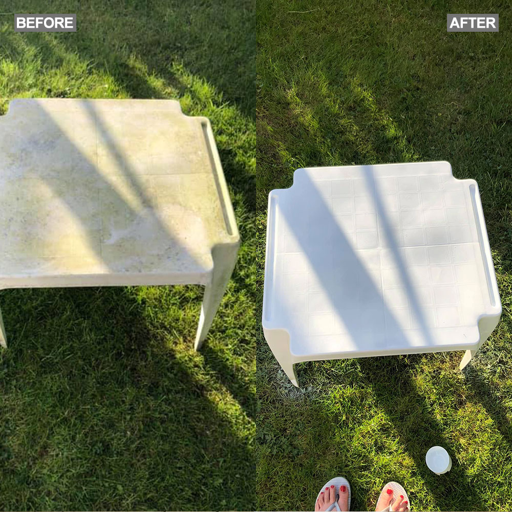 Posting on the Extreme Couponing and Bargains UK group on Facebook, Laura Carroll showed off her impressive before and after shots of a mottled green plastic table that was left looking as good as new, thanks to a can of Rust-Oleum spray paint.