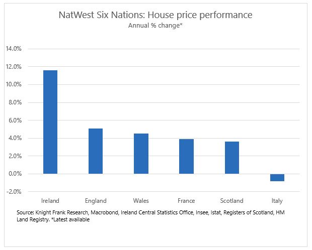 The second match in the 19th series of the Six Nations is about to commence – and it may come as no surprise that England and Wales are taking the lead. But does this correlate to their house price performance?
