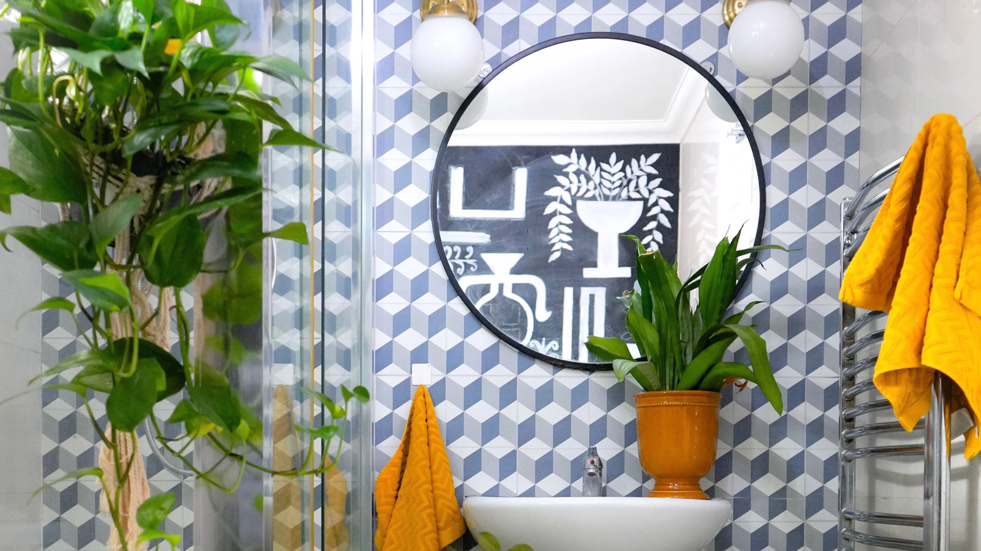 This time though, I wanted to take them a step further with a little creative twiddling. Since my bathroom walls were already covered in glossy tiles, I decided to turn them into an accent wall using floor tiles on the wall. The B&Q Poprock Geometric Vinyl Tiles had the perfect balance of classic charm and modern edge that my bare bathroom was crying out for. A decision was made.