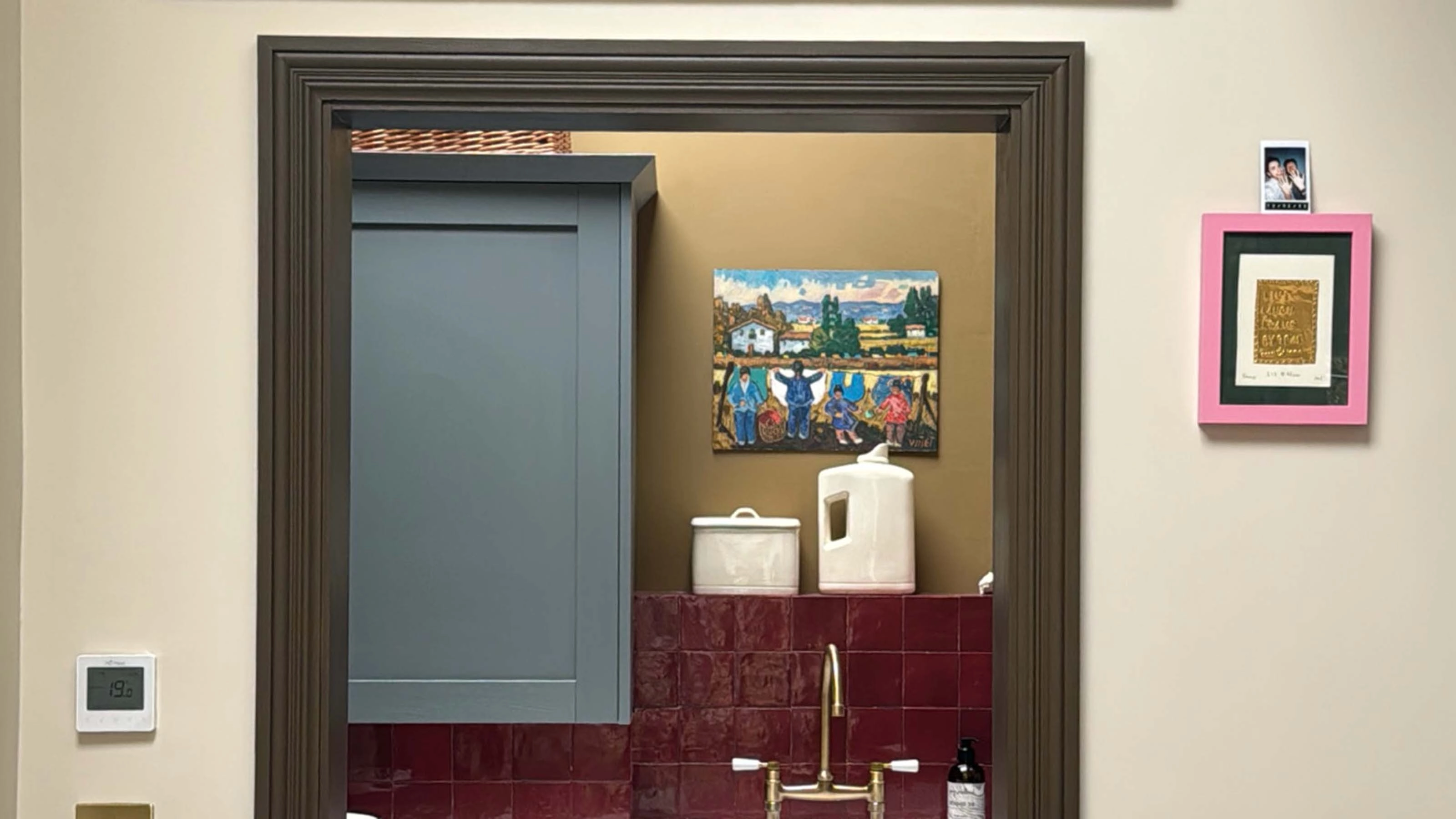 Finally, redefine what "art" means. It can be anything you cherish: a framed family recipe, a heartfelt letter, a treasured vintage scarf, a tapestry, a beloved piece of fabric, a decorative plate, a tile, or a vintage sign given pride of place. I love this vintage sign that hangs pride of place in Dan from @a.modest.semi’s kitchen.