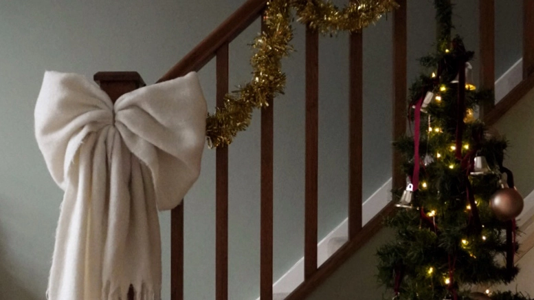 Apart from reusing our old ornaments this year, I’m thinking of adding a DIY large tartan bow made out of an old winter scarf. I simply lay the scarf flat and fold both ends in creating an ‘X’, then I tie it in the middle to complete the look! I have a large white bow hanging in my hallway that I made last Christmas. It looks so good that I can’t bear to take it down!