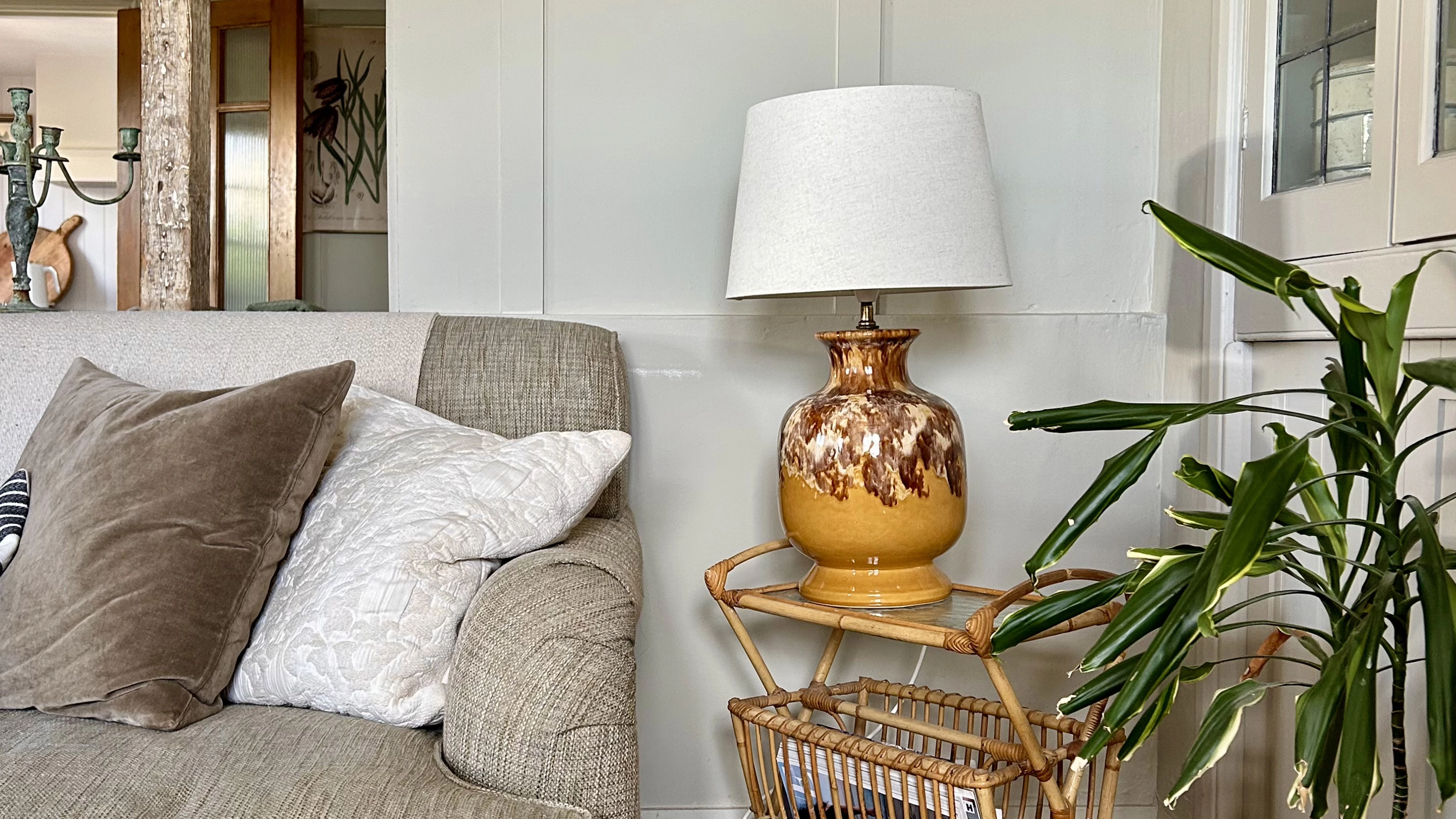 It also helps us blend eras and styles, which is how we like to decorate. That balance of old and new keeps things feeling relaxed. A few carefully chosen vintage pieces can ground a space and give it depth - like the worn pine table in our dining area or the ceramic lamp we picked up from a little local emporium that now sits proudly on a vintage bamboo coffee table/magazine rack.