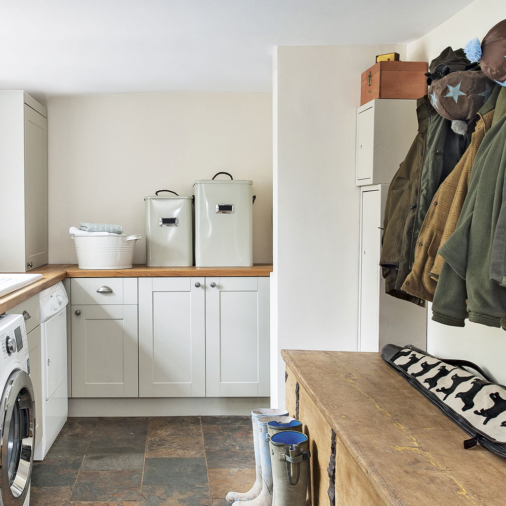 Utility rooms are generally limited when it comes to space and storage, so use spare baskets or picnic hampers to store a selection of your small essentials. Not only will it save you money and the time and trouble of installing shelves, it will also add an instant hint of countryside charm.